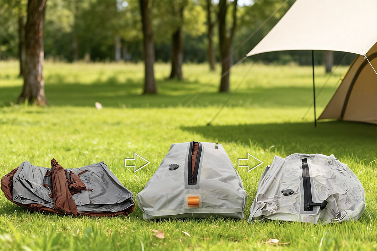 This 18L compression bag is made from 70D nylon with single-side TPU coating, waterproof and durable, using an airtight size 8# TPU zipper and an air valve.