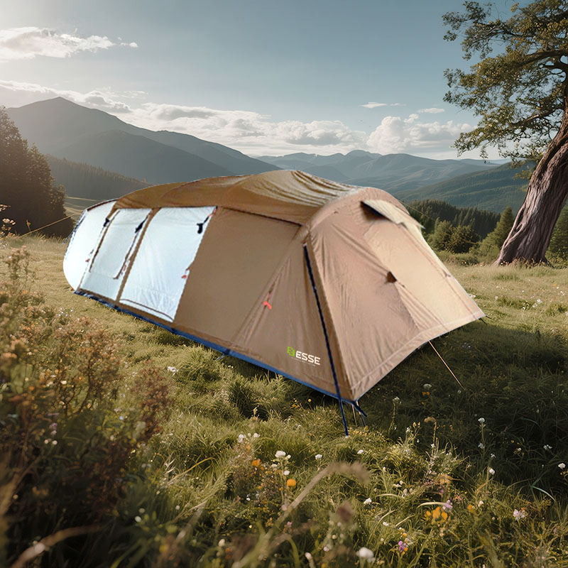 AIR TENT AURIGA 6 built for fast family getaways and long, comfortable stays, the Air Family Tent with Canopy & Bikini Fly — C-ESSE 0002 pairs inflatable stability with a roomy, easy-living layout. Four thick TPU air beams create a rigid structure that pumps up in minutes, while the front canopy and roof-only “bikini fly” add shade, airflow, and weather protection without extra fuss. Choose the breathable poly-cotton body for low condensation and a cozy, canvas-like feel—or go lighter with the polyester 150D PU 3000 mm option.
