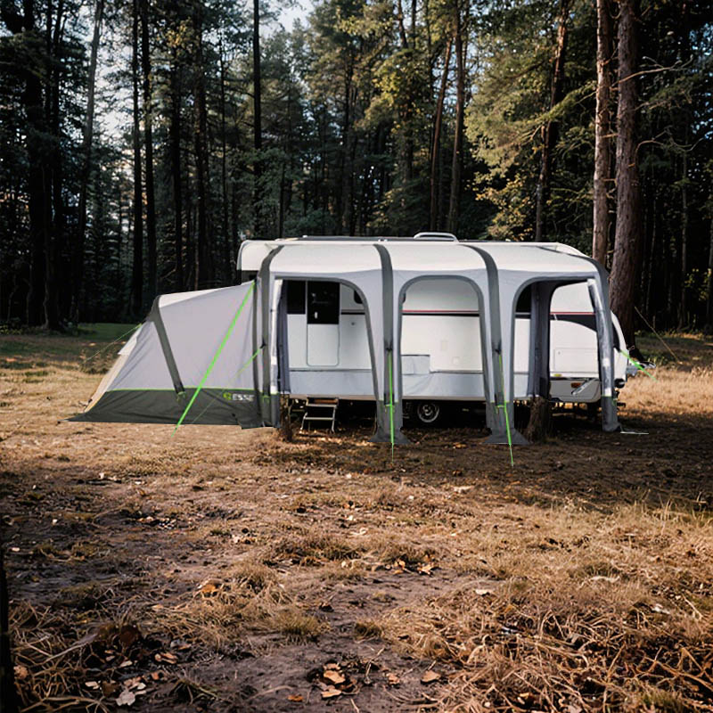 Expand your living space quickly and securely with the FORNAX 300/410 Inflatable Caravan Awning. The air-beam structure pitches fast and stays rigid thanks to a mix of TPU main beams and ridge beams, while rear telescopic poles help you fine-tune the seal to the caravan. FORNAX 300/410 canopy uses 300D Oxford ripstop with PU 5000 mm for reliable rain protection, and a poly-cotton roof liner (105 gsm) improves interior comfort and helps manage condensation. A side annex (180 × 220 cm) adds flexible room for sleeping, storage or a private change area.