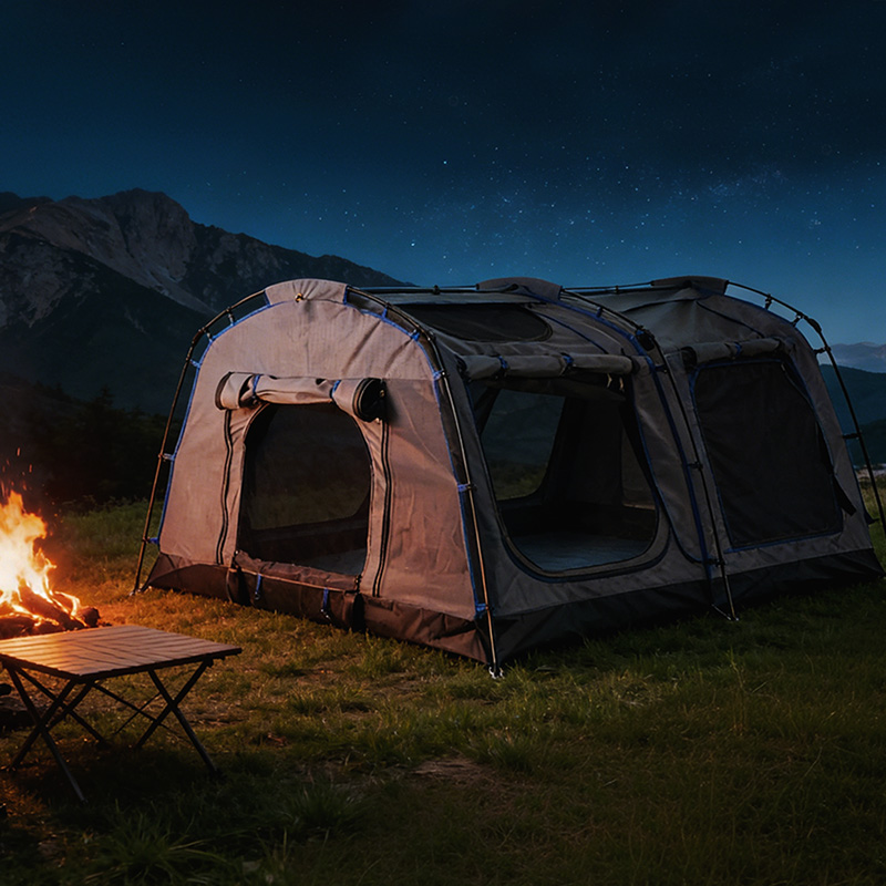 The entire tent including mattress can be vacuum packed, reducing package size by 35%. Easier to mix in a container with your RTTs or awnings, and better for retail shelf space.